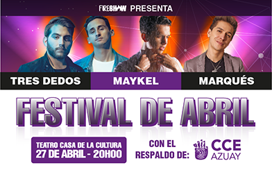 Fecha: 12 de abril del 2019 Lugar: Coliseo Voltaire Paladines Polo Hora: 20:00:00Fecha: 27 de abril del 2019 Lugar: Teatro casa de la cultura Hora: 20:00:00Fecha: 16 de Mayo del 2019 Lugar: Coliseo Jefferson Perez Hora: 20:00:00Fecha: 24 de mayo del 2019 Lugar: Teatro Agora c.c.e Hora: 19:00:00Fecha: 8 de Junio del 2019 Lugar: Estadio Alberto Spencer – Guayaquil Hora: 20:30:00